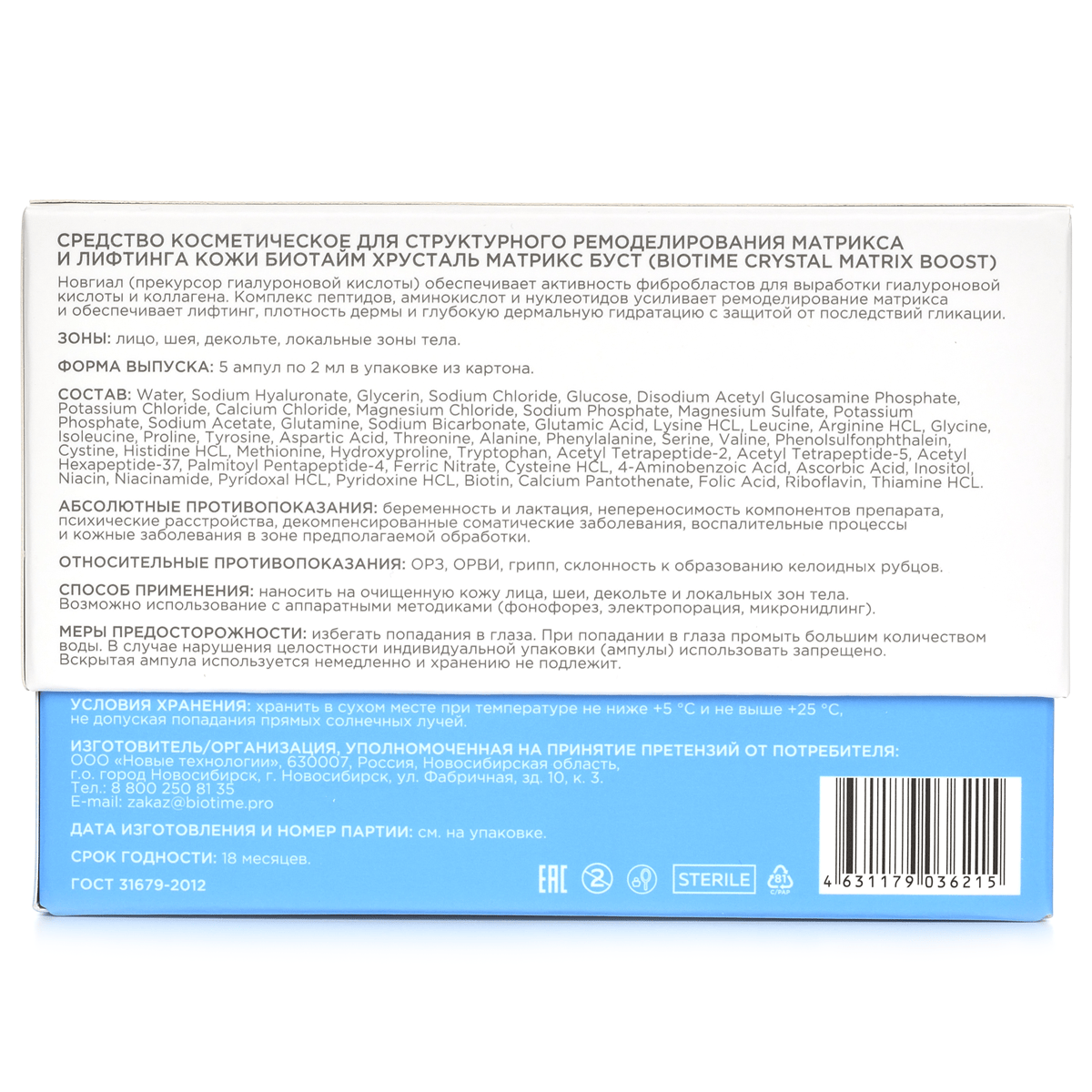 Гель на основе гиалуроновой кислоты «Хрусталь» / Crystal (Кристалл), Biotime (Биотайм) - 5 х 2 мл