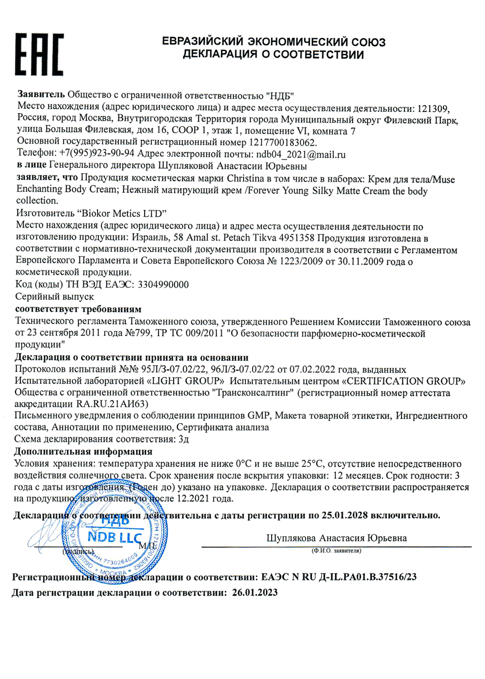 Обладает легкой текстурой, моментально впитывается. Подходит для ежедневного использования.