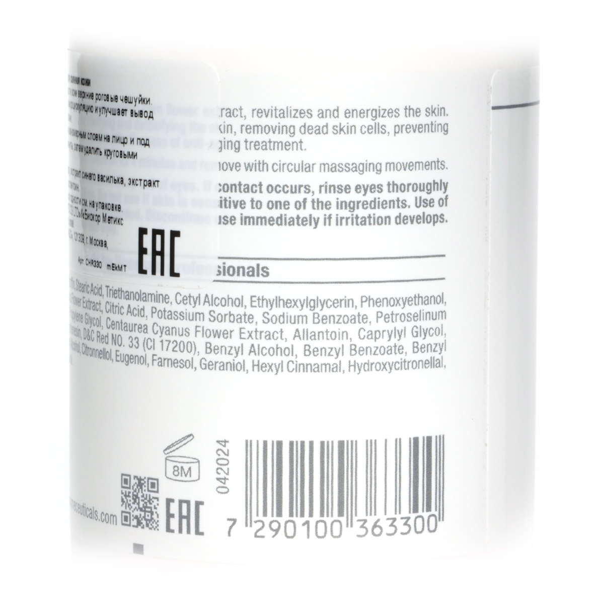 Деликатно устраняет ороговевшие клетки с поверхности кожи, абсорбирует и удаляет глубокие загрязнения. Выравнивает рельеф, придавая коже сияние. Благодаря экстрактам цветков василька, петрушки и аллантоина оказывает детоксикационное, очищающее и легкое осветляющее действие.
