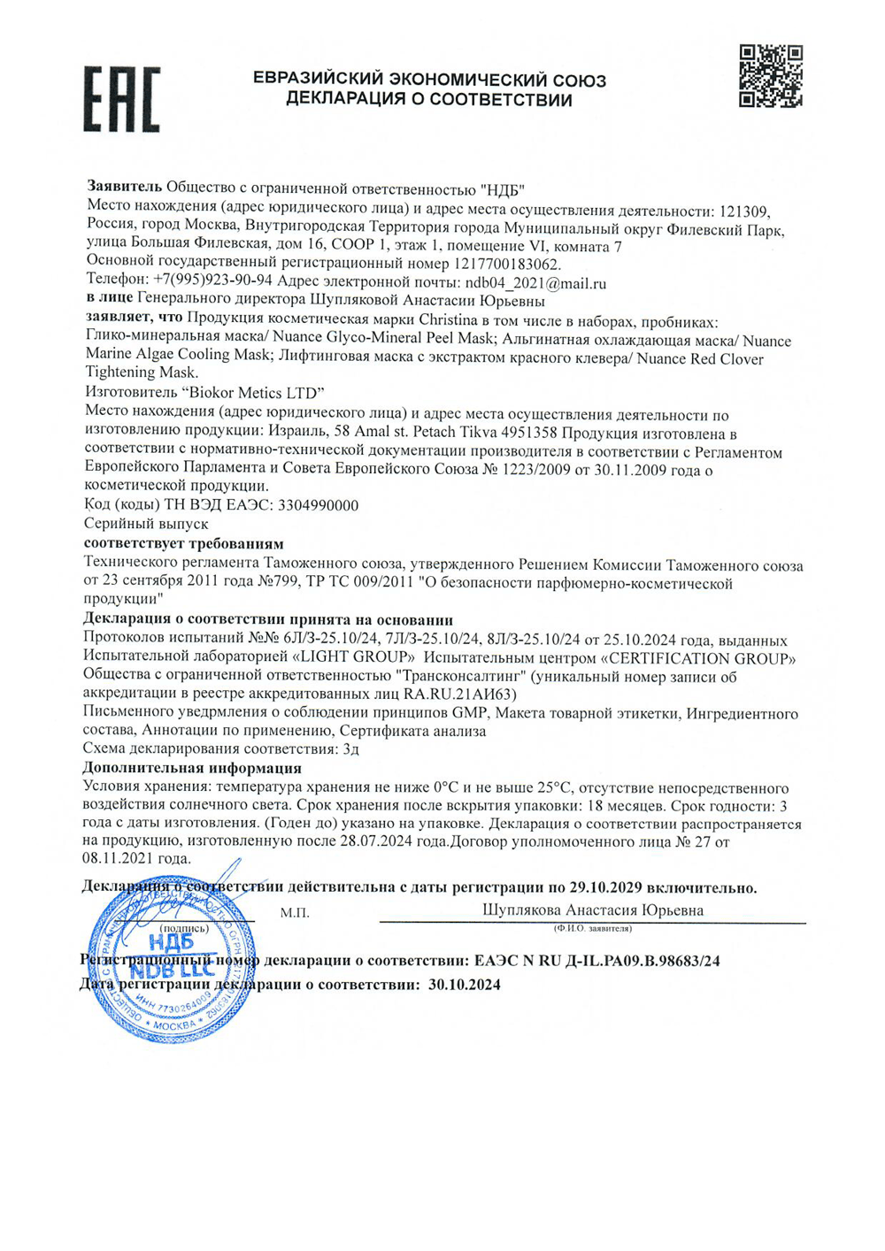 Лифтинговая маска с экстрактом красного клевера / Red Clover Tightening Mask, Nuance, Christina (Кристина) - 50 мл
