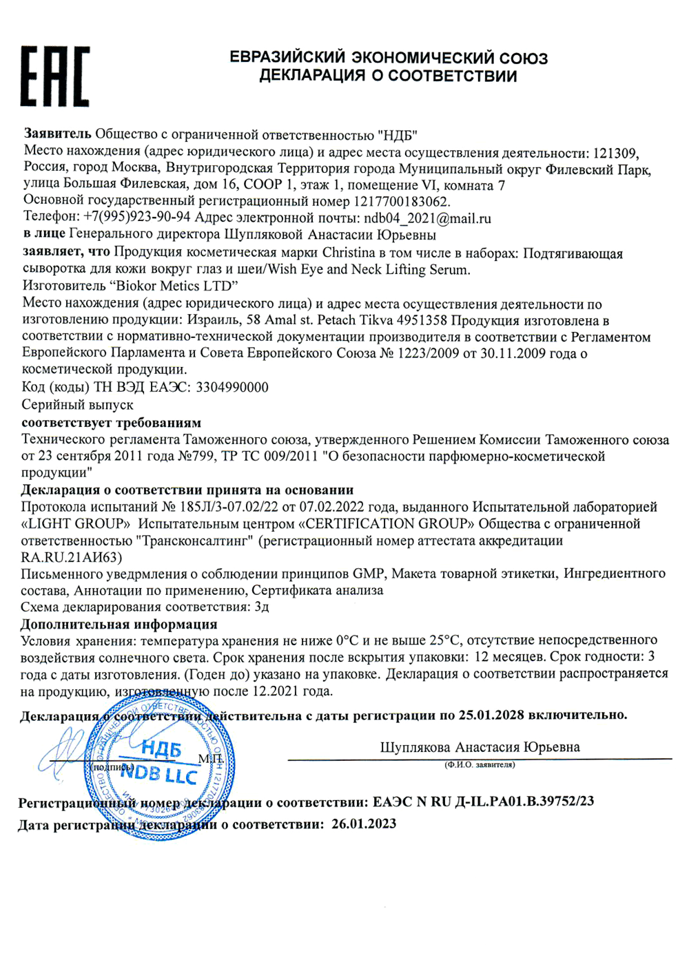 Подтягивающая сыворотка для кожи вокруг глаз и шеи (шаг 7) / Eyes & Neck Lifting Serum, Wish, Christina (Кристина) - 100 мл