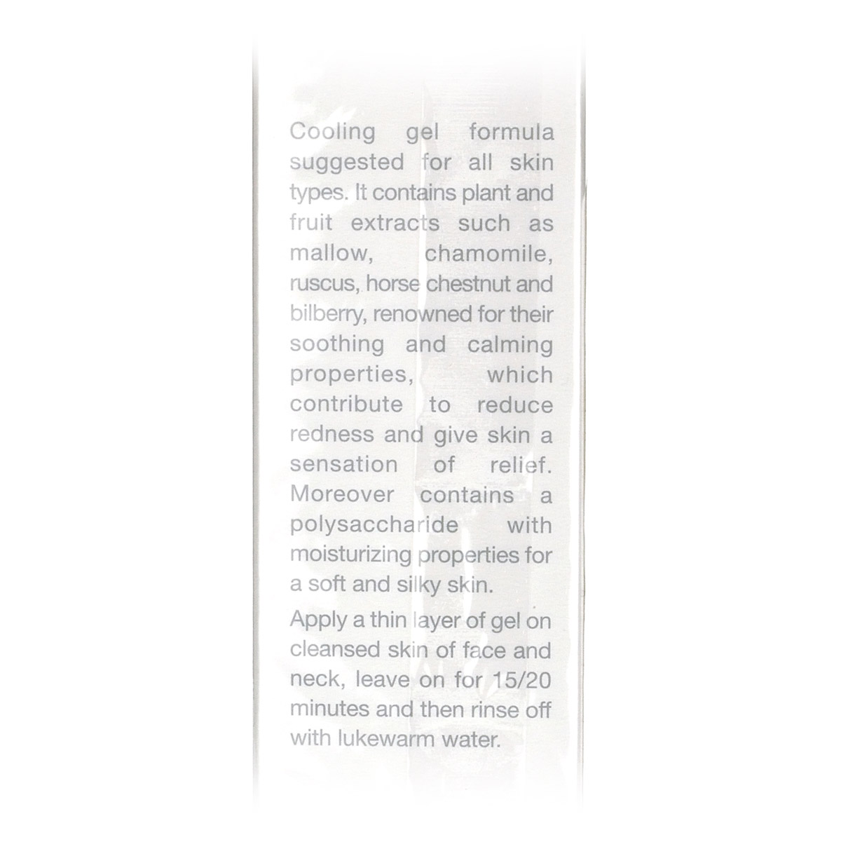 Активные ингредиенты: вода цветков липы, вода гамамелиса виргинского, экстракт конского каштана, экстракт цветков ромашки, огуречный экстракт, экстракт мальвы, экстракт корня иглицы понтийской, экстракт черники.