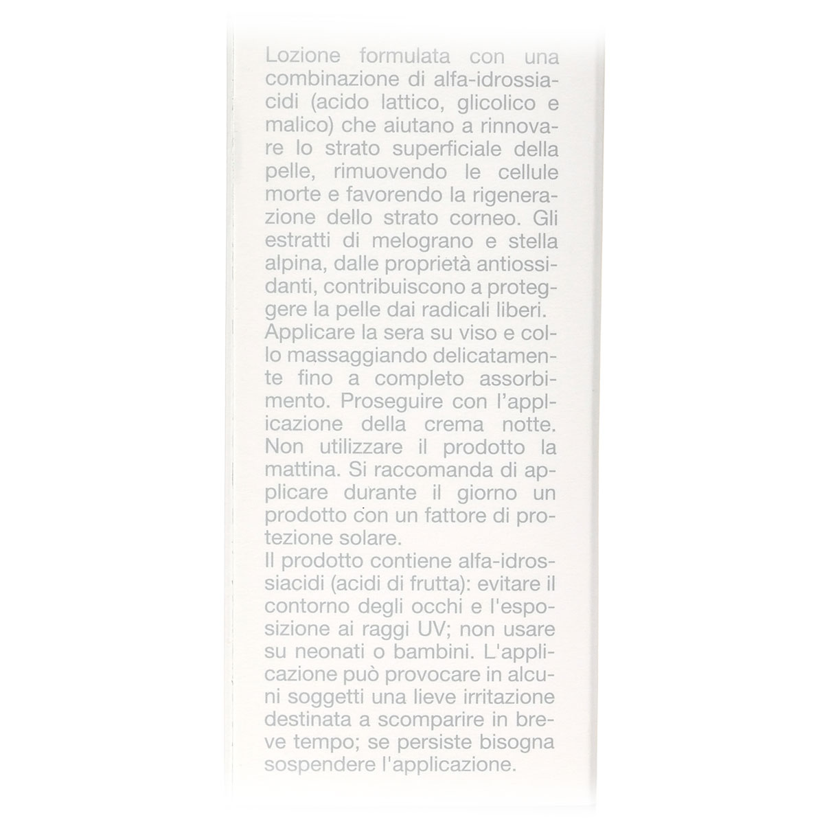 Активные ингредиенты: молочная кислота, гликолевая кислота, яблочная кислота, экстракт граната, экстракт эдельвейса, глицин сои, супероксиддисмутаза.