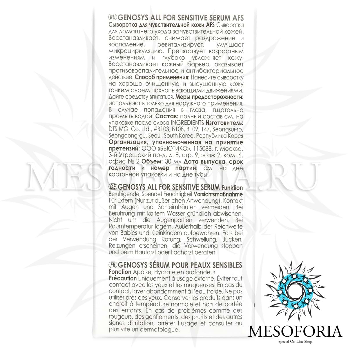 Сыворотка для чувствительной кожи / All For Sensitive Serum AFS, Genosys (Генозис) - 30 мл