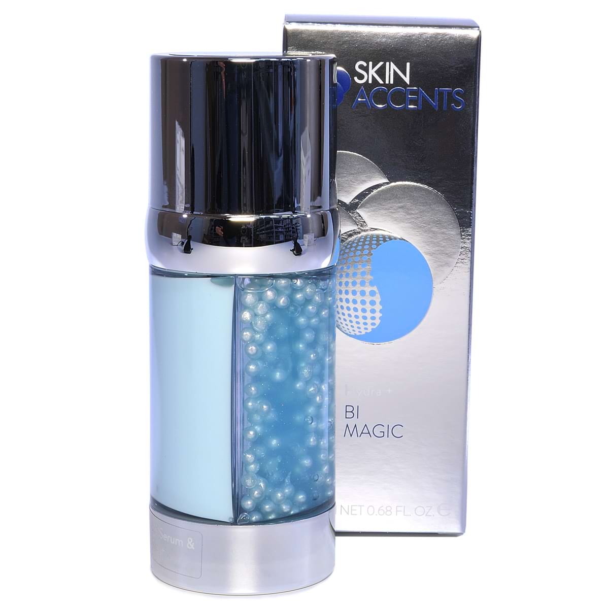 В оригинальном двухкамерном флаконе Bi-Magic находятся два дополняющих друг друга продукта: сыворотка «Магические сферы», заключенная в драгоценные жемчужины, и роскошный anti-age крем.