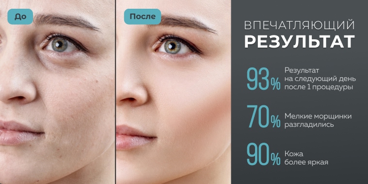 70% Разглаживание мимических морщин и укрепление контуров лица.