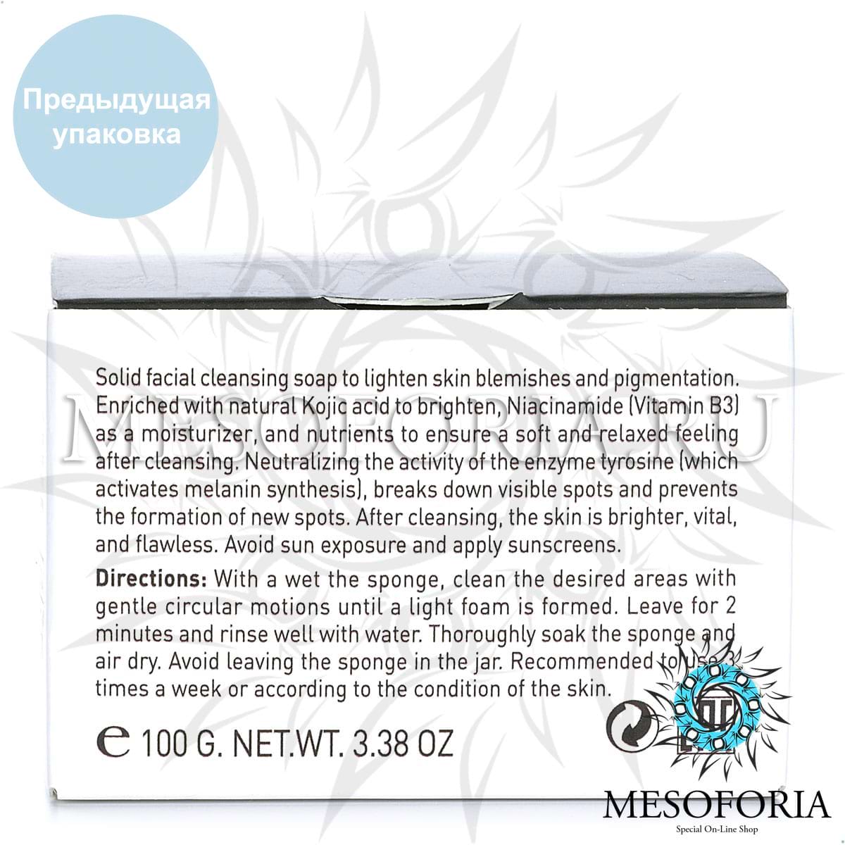 Способ применения:Смочите спонж большим количеством воды, наберите мыло и распределите его по лицу массирующими движениями. Оставьте на 1-2 минуты, затем смойте тёплой водой. Протрите лицо подходящим вам тоником и нанесите крем. Днём обязательно используйте солнцезащитный крем.