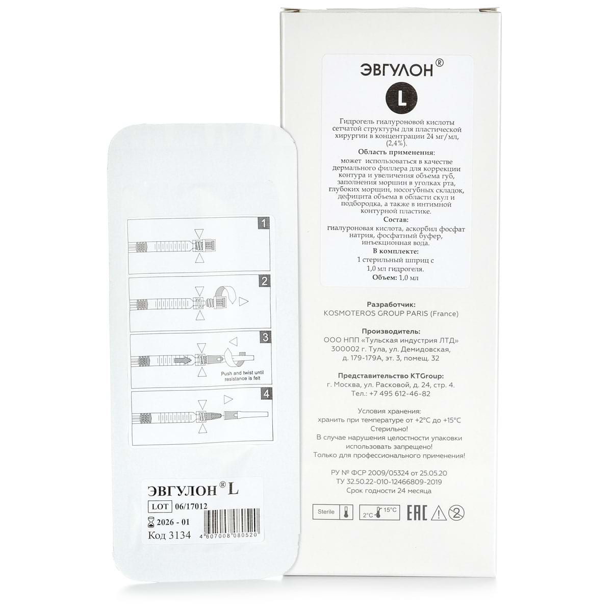 Эвгулон L - предназначен для эстетической коррекции губ и интимной пластики. Способен решить любой косметический дефект губ, увеличить объем, более четко очертить их контур или исправить его/