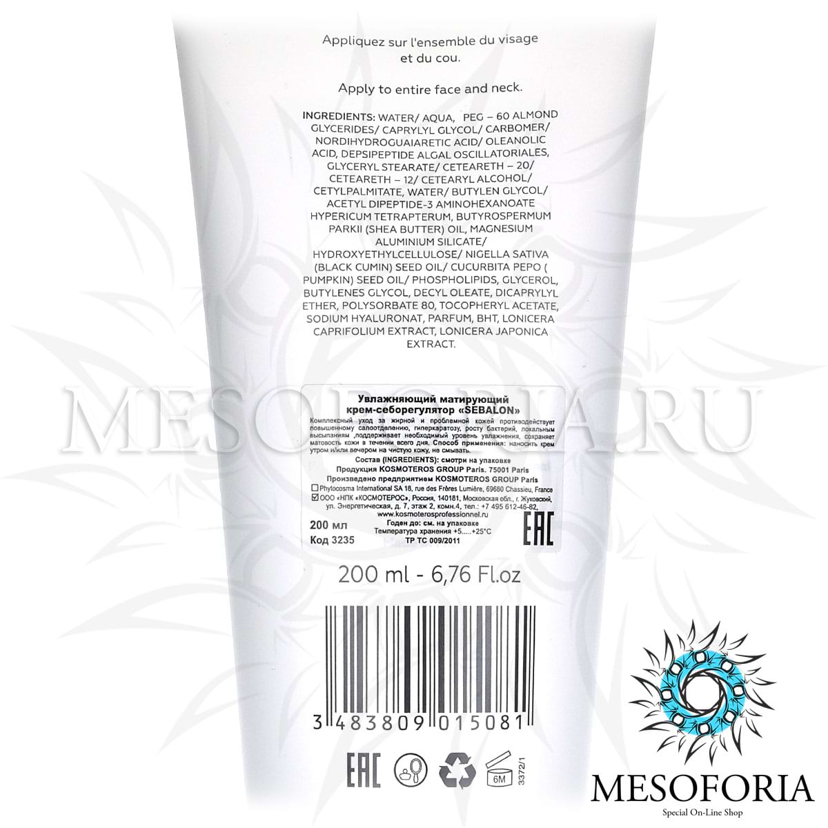 Увлажняющий матирующий крем-себорегулятор «SEBALON» / Creme Matifiante Seboregulatrice «SEBALON», Kosmoteros (Космотерос), 200 мл