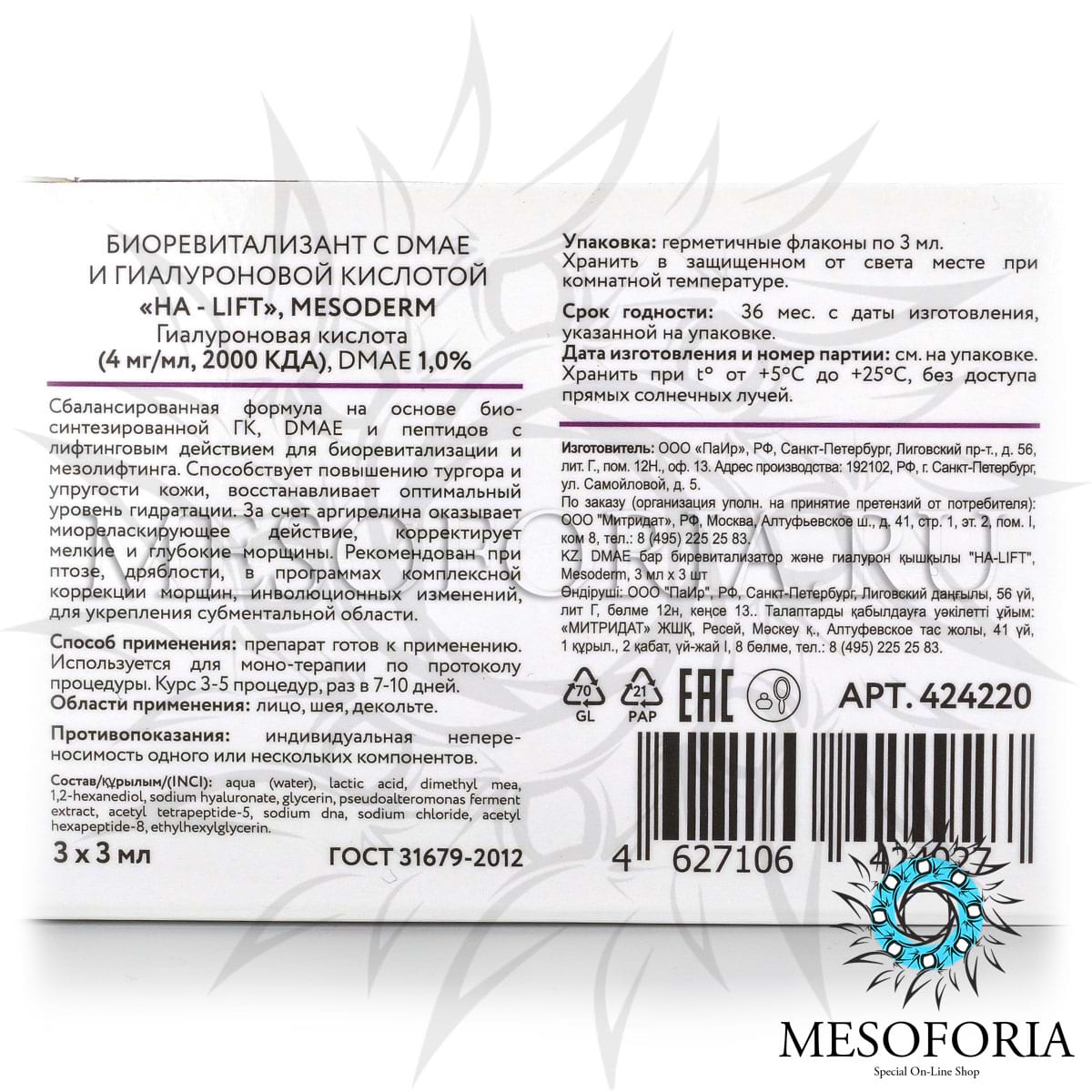 Биоревитализант с DMAE и гиалуроновой кислотой «HA - Lift», Mesoderm (Мезодерм), 3 мл х 3 шт