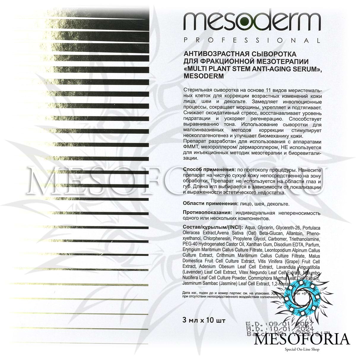 Антивозрастная сыворотка для фракционной мезотерапии / Multi Plant Stem Anti-Ageing Serum, Mesoderm (Мезодерм), 3 мл х 10 шт