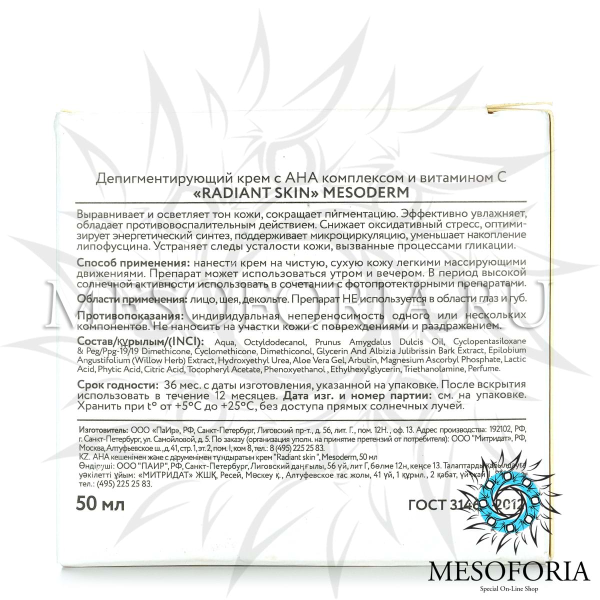 Депигментирующий крем с АНА комплексом и витамином С / Radiant Skin Cream, Mesoderm (Мезодерм), 50 мл