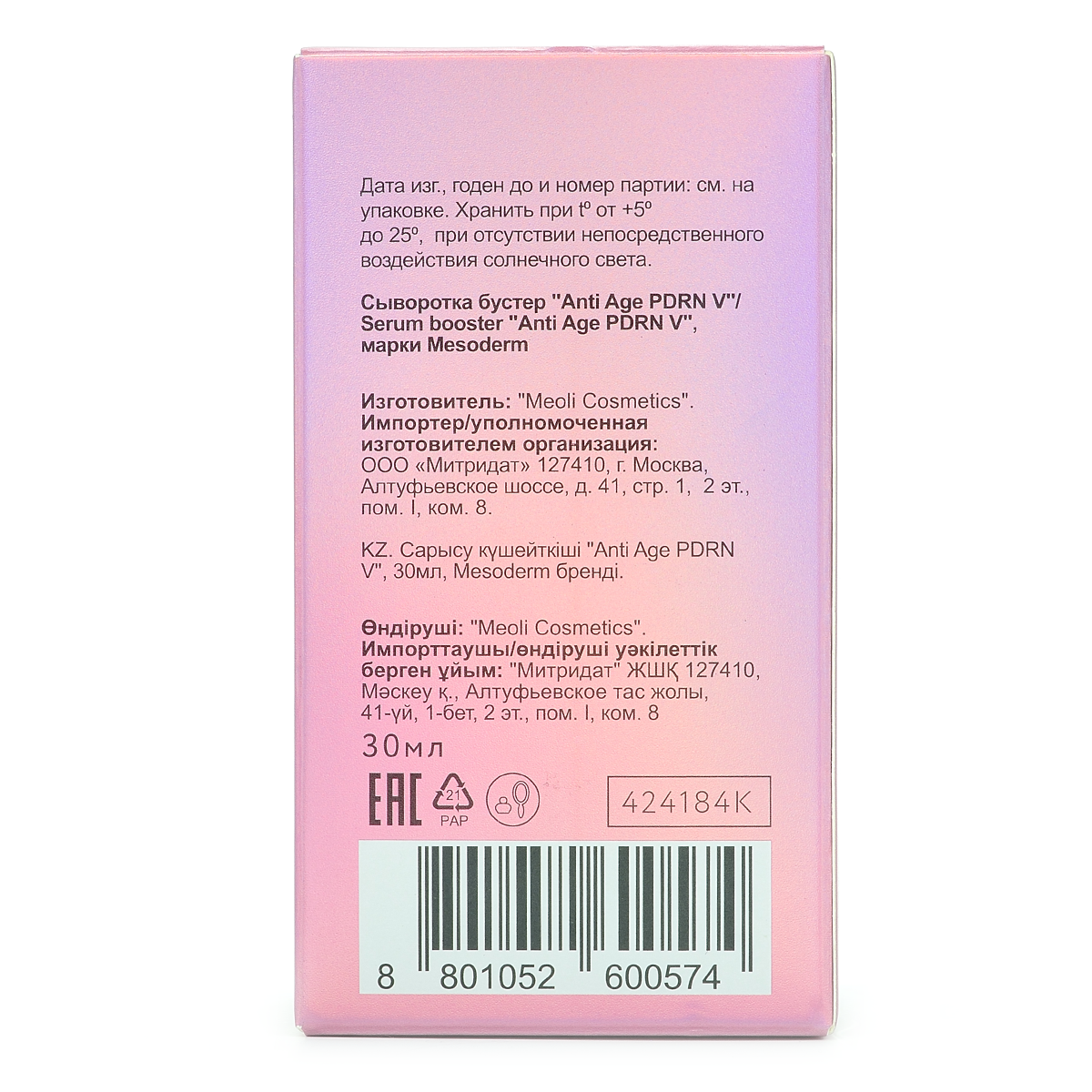 Антивозрастная сыворотка Anti Age PDRN V от MESODERM сочетает в себе омолаживающее, восстанавливающее и регенерирующее действие.