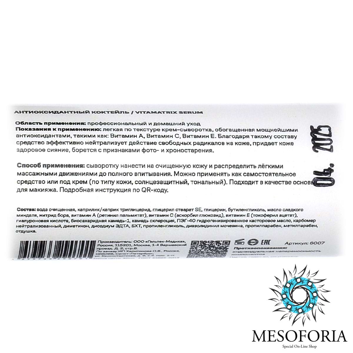 VitaMatrix Serum / Антиоксидантная витаминная крем-сыворотка, Mesoforia (Мезофория) - 30 мл