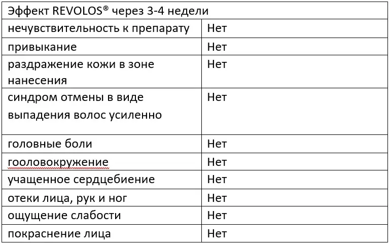 REVOLOS® не вызывает раздражения кожи. С применением препарата значительно повышается рост волос (в среднем на 90%).