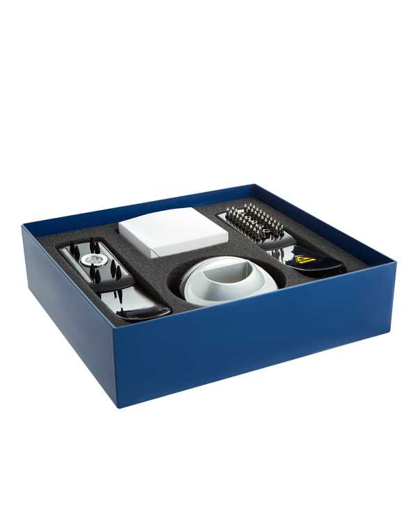 Набор состоит из двух функциональных щеток, с использованием различных методик, позволяющих наиболее активно воздействовать на кожу головы и волосяные луковицы, проводить полноценные процедуры ухода.