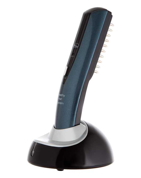 Первая массажная щетка сочетает в себе применение «мягкого» лазера с полноценной вибромассажной функцией. Лазерное воздействие низкой интенсивности успешно применяется для борьбы с выпадением волос (в том числе и для борьбы с наследственной мужской алопецией). Лазерное излучение восстанавливает процессы энергетического обмена в тканях, стимулирует выработку АТФ (аденозинтрифосфата), молекулы, отвечающей за насыщение клеток энергией для роста и развития. Таким образом, рост волос значительно улучшается, волосы становятся более крепкими и плотными. Вибромассаж усиливает микроциркуляцию крови, снимает спазм сосудов головы, укрепляет волосы, способствует снятию усталости и проявлений стресса. Совмещенное действие этих двух популярных методов наиболее успешно применяется для борьбы с потерей волос, вызванной разными факторами – ухудшением питания, приемом лекарственных препаратов, гормональными изменениями и другими.