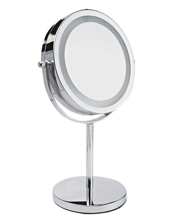 Удобное настольное зеркало с подсветкой идеально для проведения косметических процедур, нанесения макияжа, коррекции формы бровей, очищения кожи лица. Зеркало имеет круговую подсветку и 5-кратное увеличение одной из сторон.
