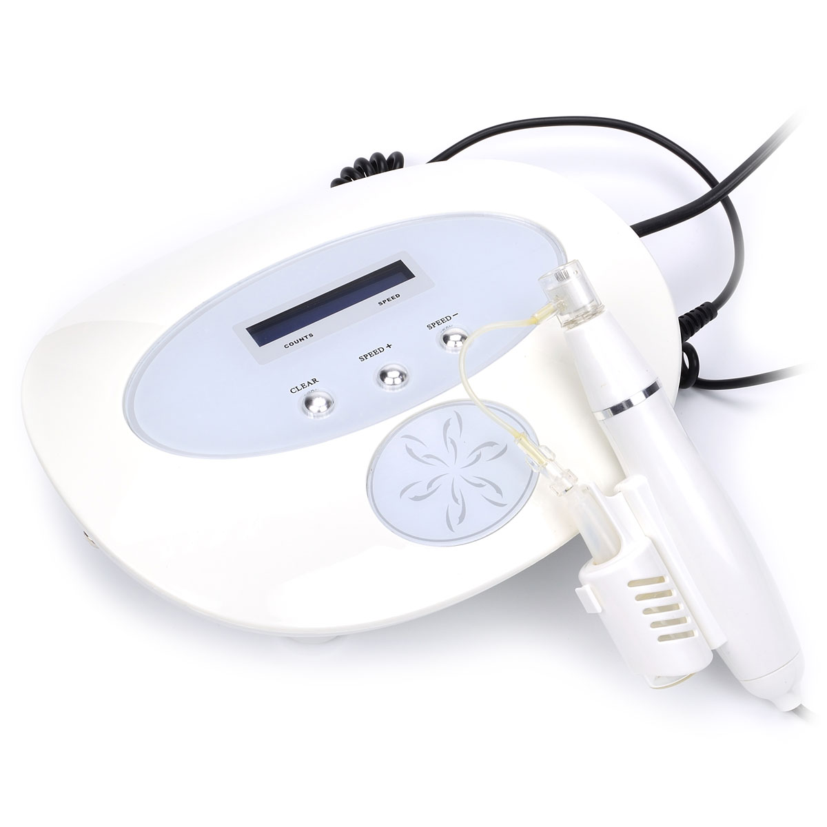 Аппарат представляет собой блок управления с дисплеем, ручку манипулу со специальным картриджем. Количество игл в картридже аппарата может быть 11 шт. Каждый картридж имеет 11 игл и специальную канюлю для подсоединения к емкости и подачи раствора из-под иглы. Стерильный раствор подается из емкостей по 5 мл со сменным наконечником через одноразовый катетер. После включения аппарата иглы в картридже начинают совершать возвратно-поступательные движения с частотой от 3000 проколов/мин до 5500 проколов/мин.