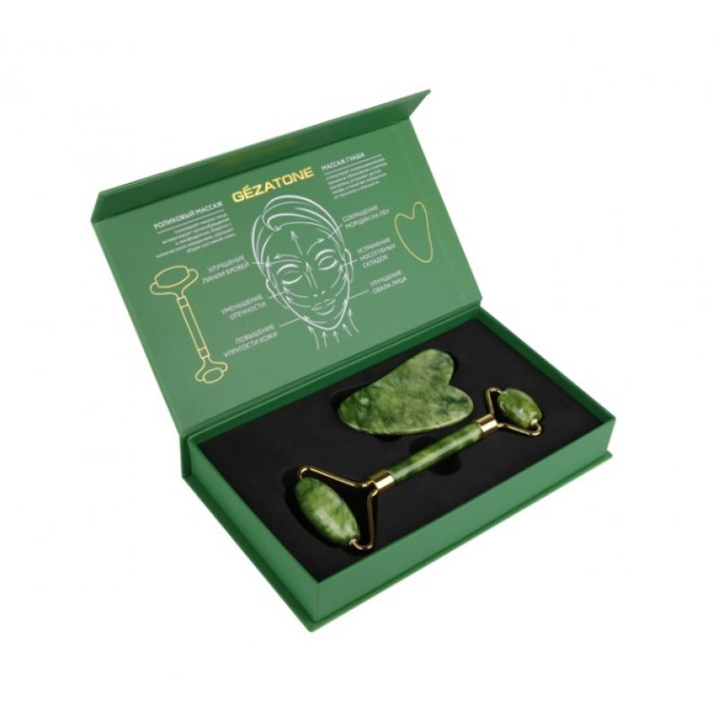 Набор нефритовый массажер-роллер для лица и кристалл для массажа Гуаша AMG331, Gezatone (Гезатон, Жезатон)