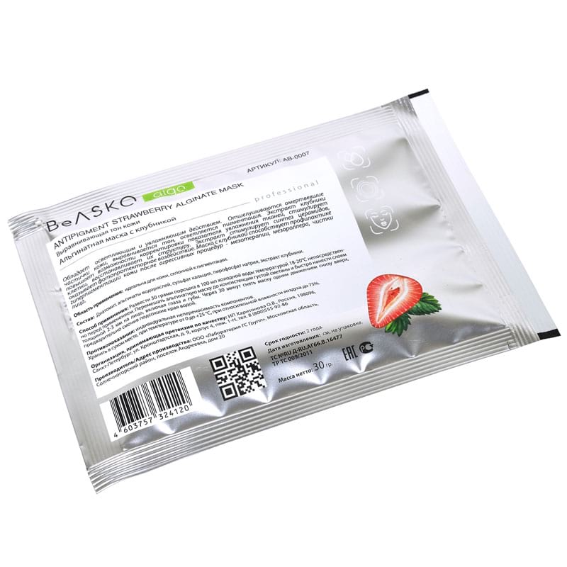 Альгинатная маска выравнивающая цвет кожи с клубникой / Antipigment Strawberry Alginate Mask, BeASKO - 6*30 гр