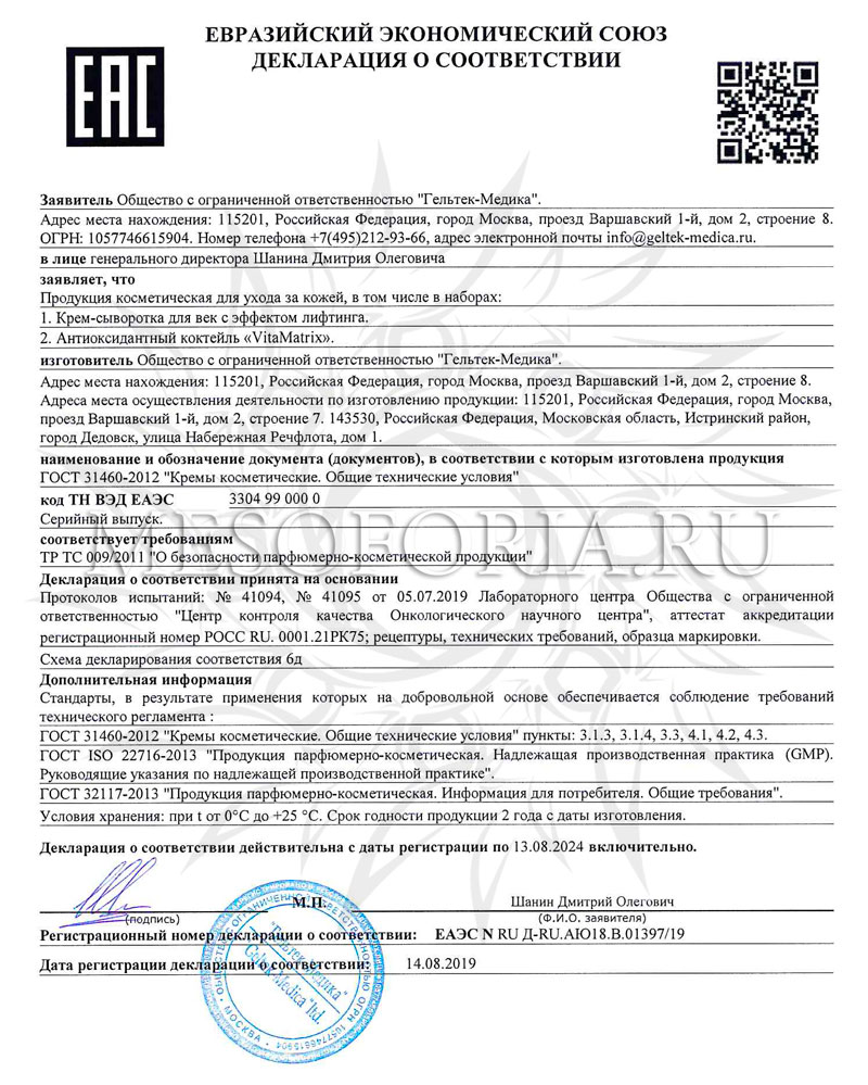 Сертификат на препарат Вы можете найти в разделе «Сертификаты продукции».