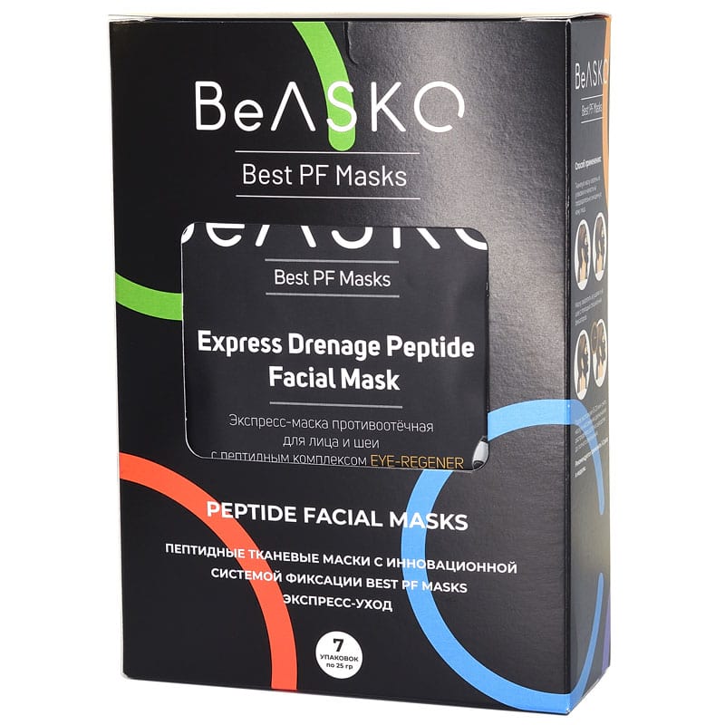 Express Drenage Peptide Facial Mask / Экспресс-маска тканевая противотечная для лица и шеи с пептидным комплексом EYE REGENER*, BeASKOTM содержит EYE-REGENER® (Франция), обогащенный олигопептидами и олигосахаридами, и является инновационным продуктом, усиливая дренаж лимфы, снижает риск появления отеков и повышает упругость и эластичность кожи, делая кожу более подтянутой.