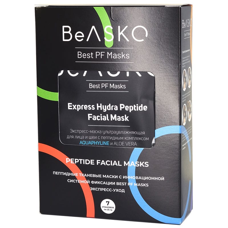 Экспресс-маска ультраувлажняющая для лица и шеи с пептидным комплексом AQUAPHYLINE и ALOE VERA / Express Hydra Peptide Facial Mask, Best PF Masks, BeASKO - 7*25 гр