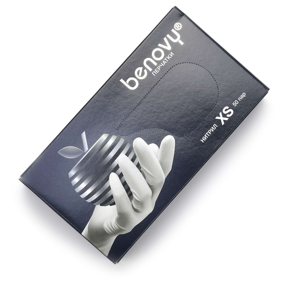 Перчатки нитриловые белые XS Benovy (Бенови) - 50 пар