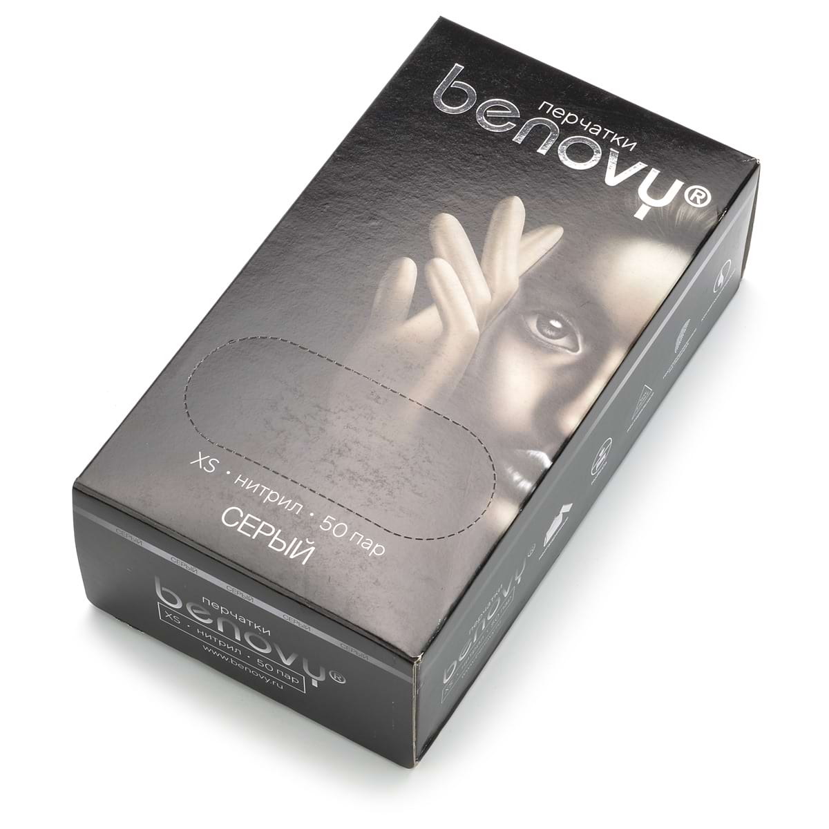 Перчатки нитриловые серые XS Benovy (Бенови) - 50 пар