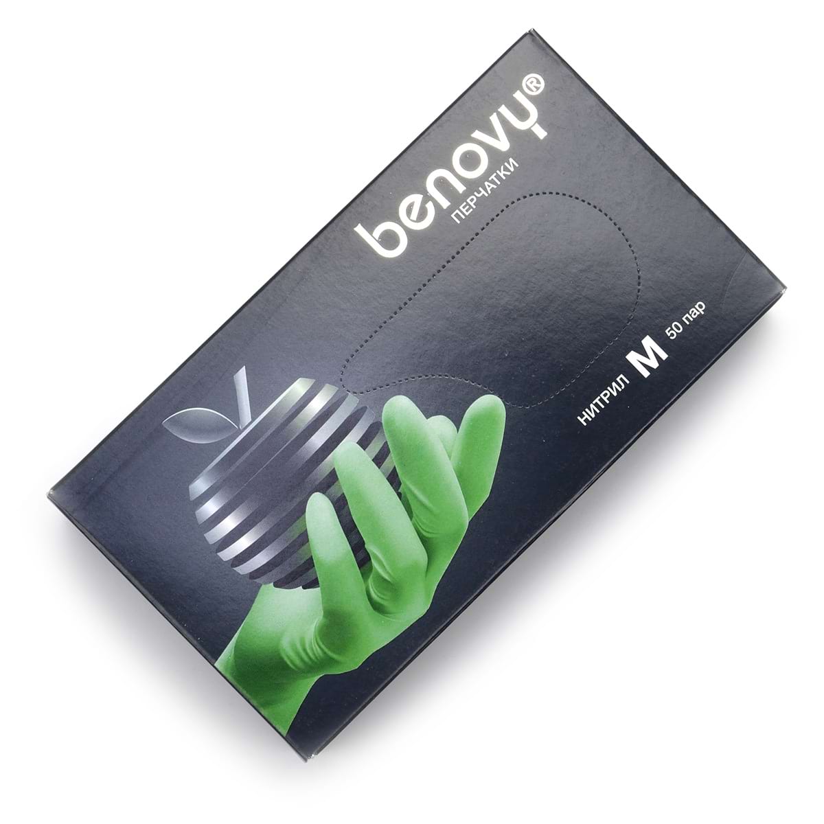 Перчатки нитриловые зеленые M Benovy (Бенови) - 50 пар
