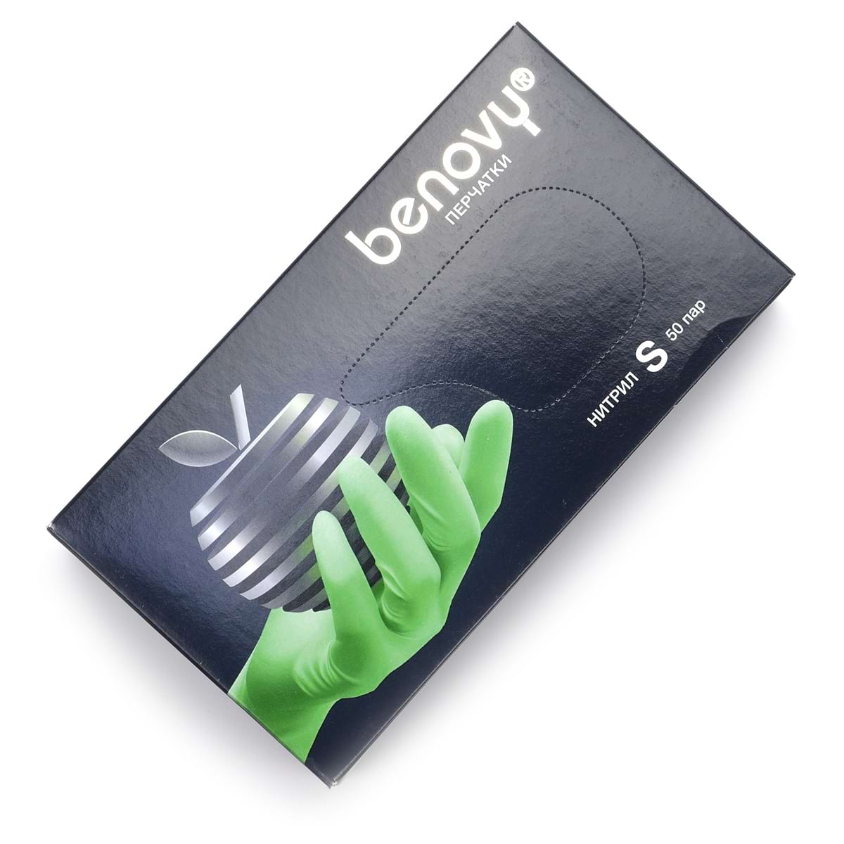Перчатки нитриловые зеленые S Benovy (Бенови) - 50 пар