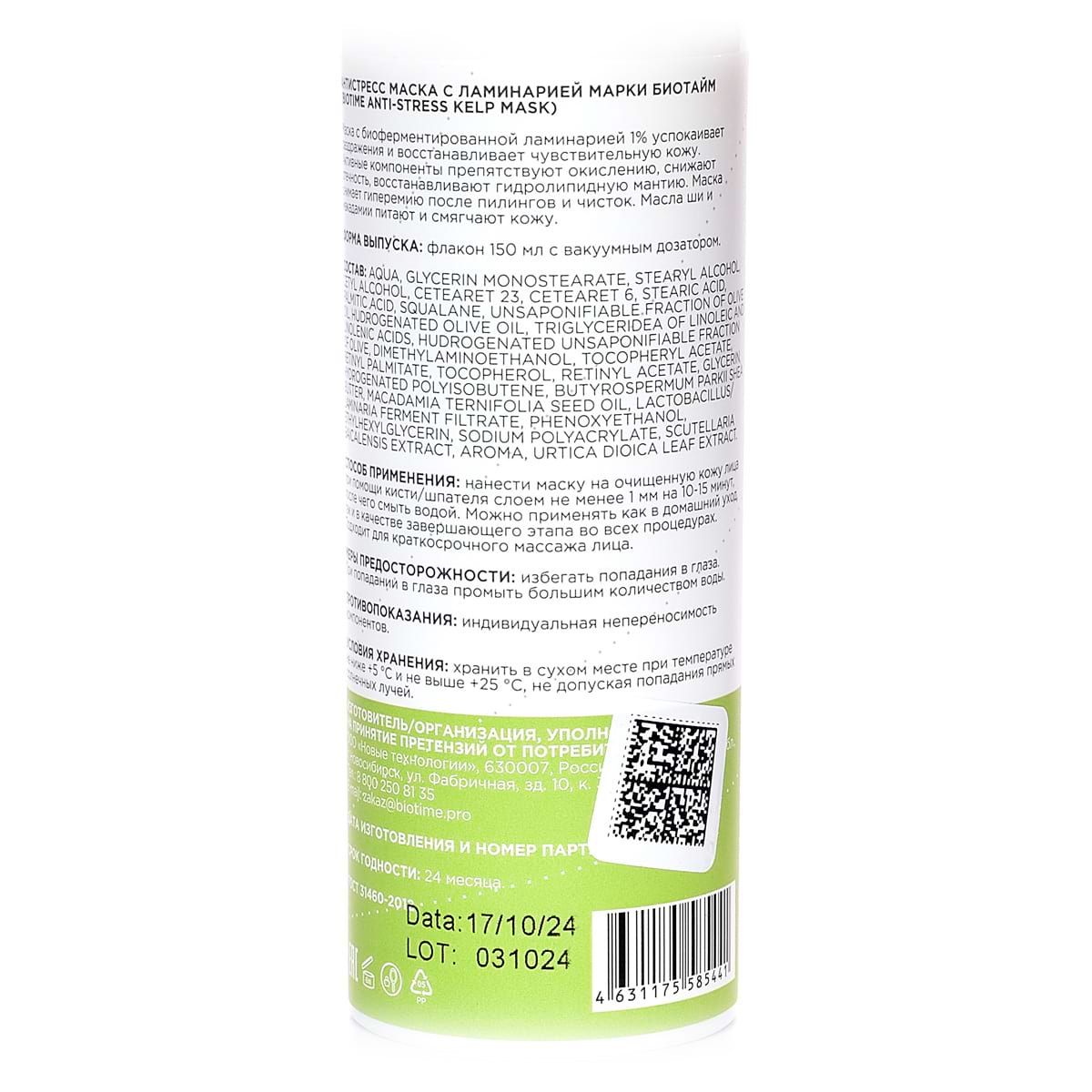 Антистресс маска с ламинарией / Anti-Stress Kelp Mask, Biotime (Биотайм) - 150 мл
