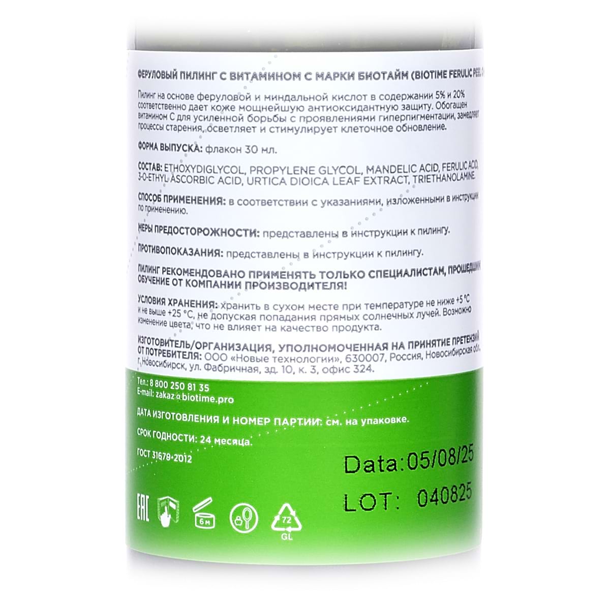 Феруловый пилинг с витамином С / Ferulic Peel C+, Biotime (Биотайм) - 30 мл