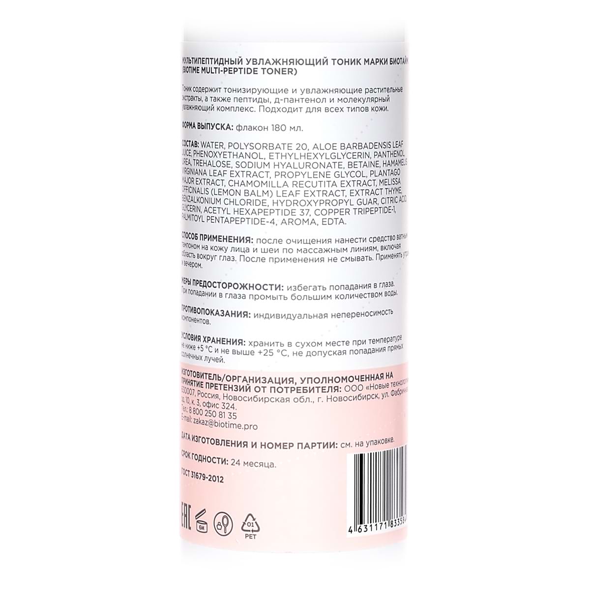 Мультипептидный увлажняющий тоник / Multi-Peptide Toner, Biotime (Биотайм) - 180 мл