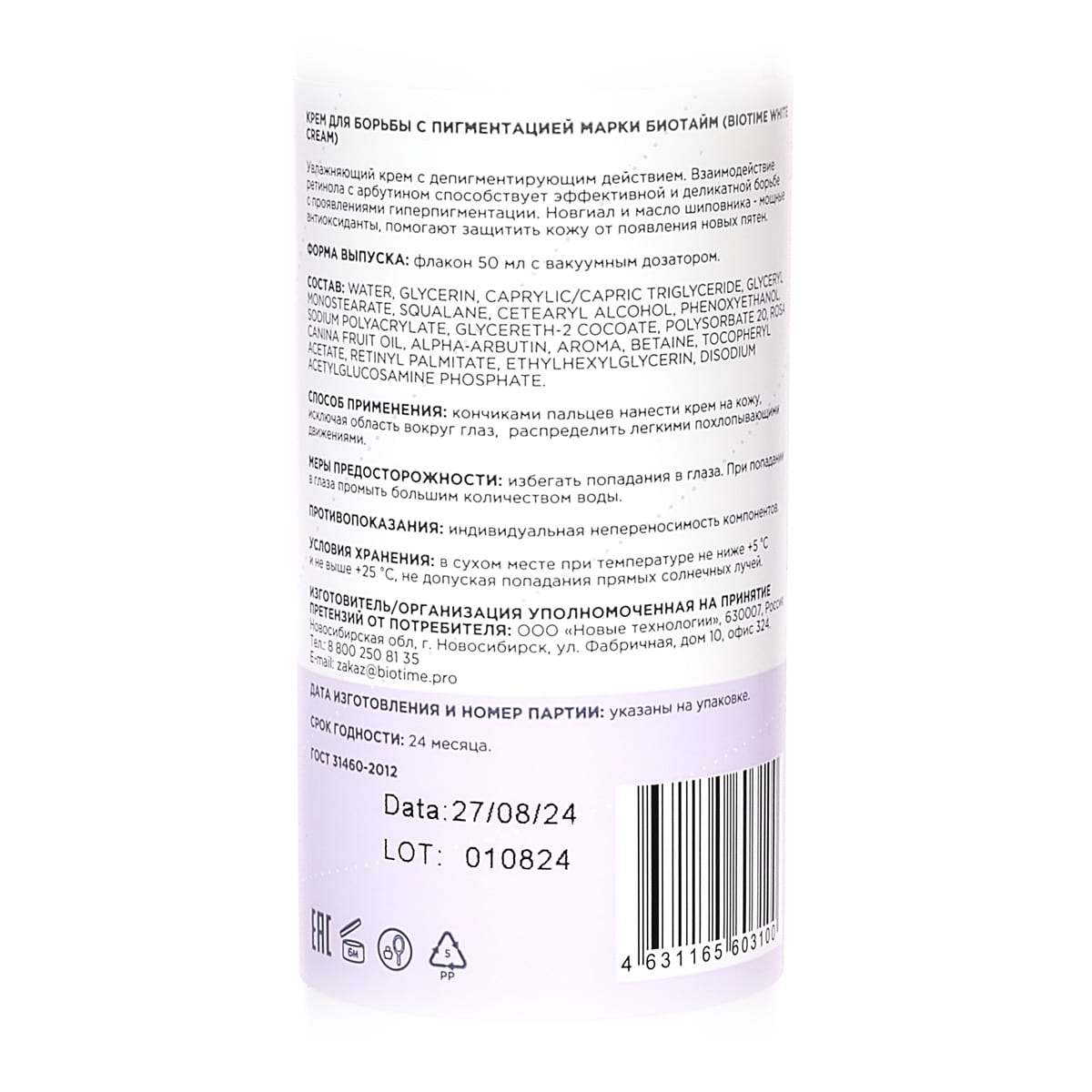 Крем для борьбы с пигментацией / White Cream, Biotime (Биотайм) - 50 мл