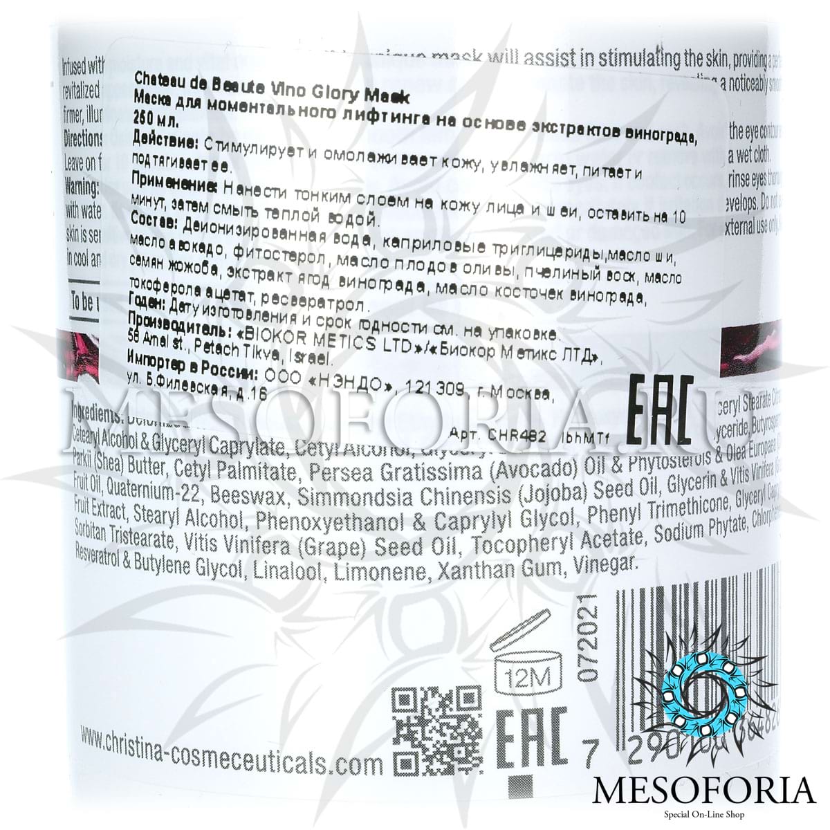 Маска для моментального лифтинга (шаг 4b) / Vino Glory Mask, Chateau De Beaute, Christina (Кристина) - 250 мл