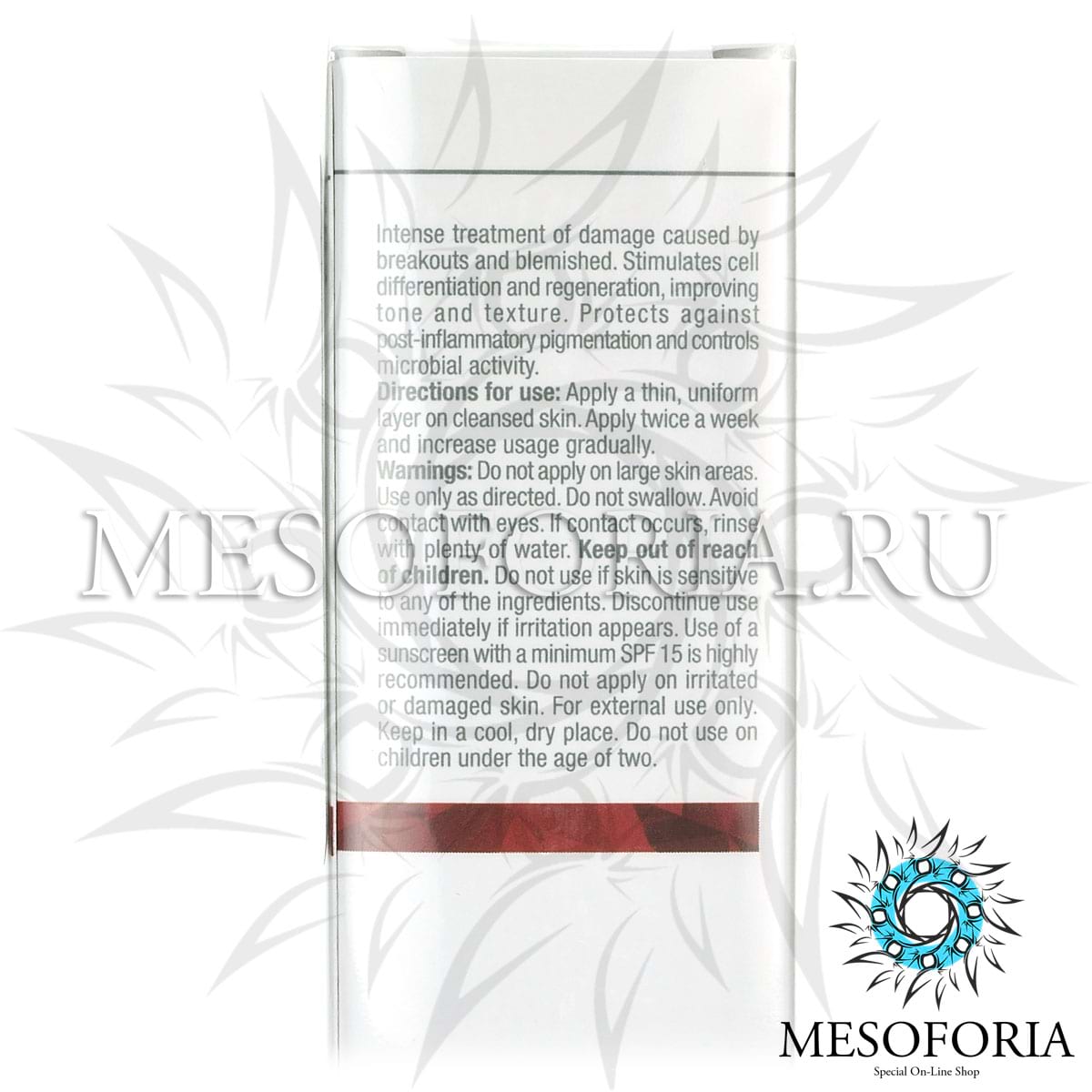 Уменьшает частоту появления новых воспалительных элементов, в том числе при активной форме акне. Содержит ретинол. Применяется вместе с увлажняющим кремом.