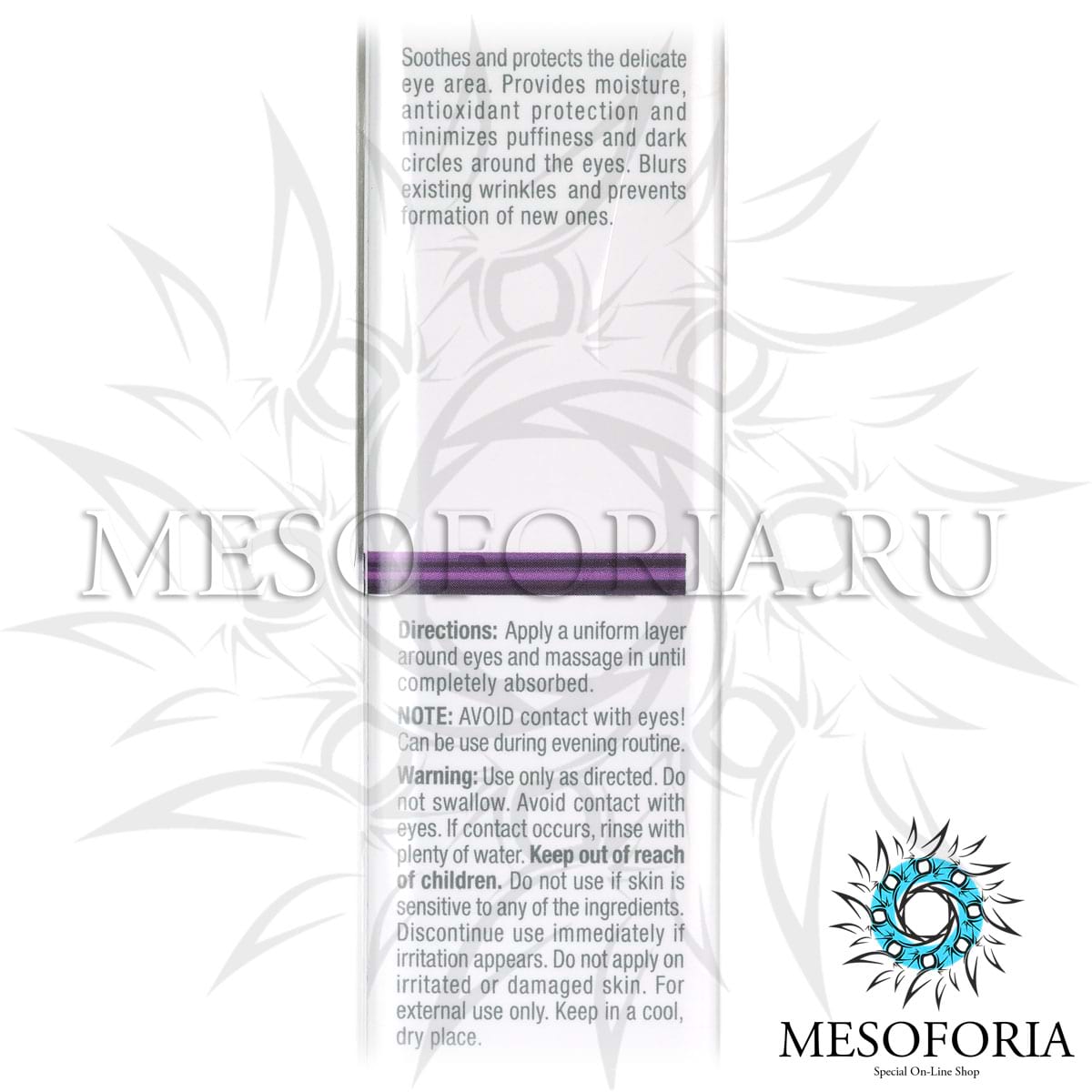 Активные ингредиенты: гиалуроновая кислота, комплекс Eye beautifier, ретинил пальмитат (0.12%), комплекс Soothing plant blend, пантенол, диметикон, токоферола ацетат.