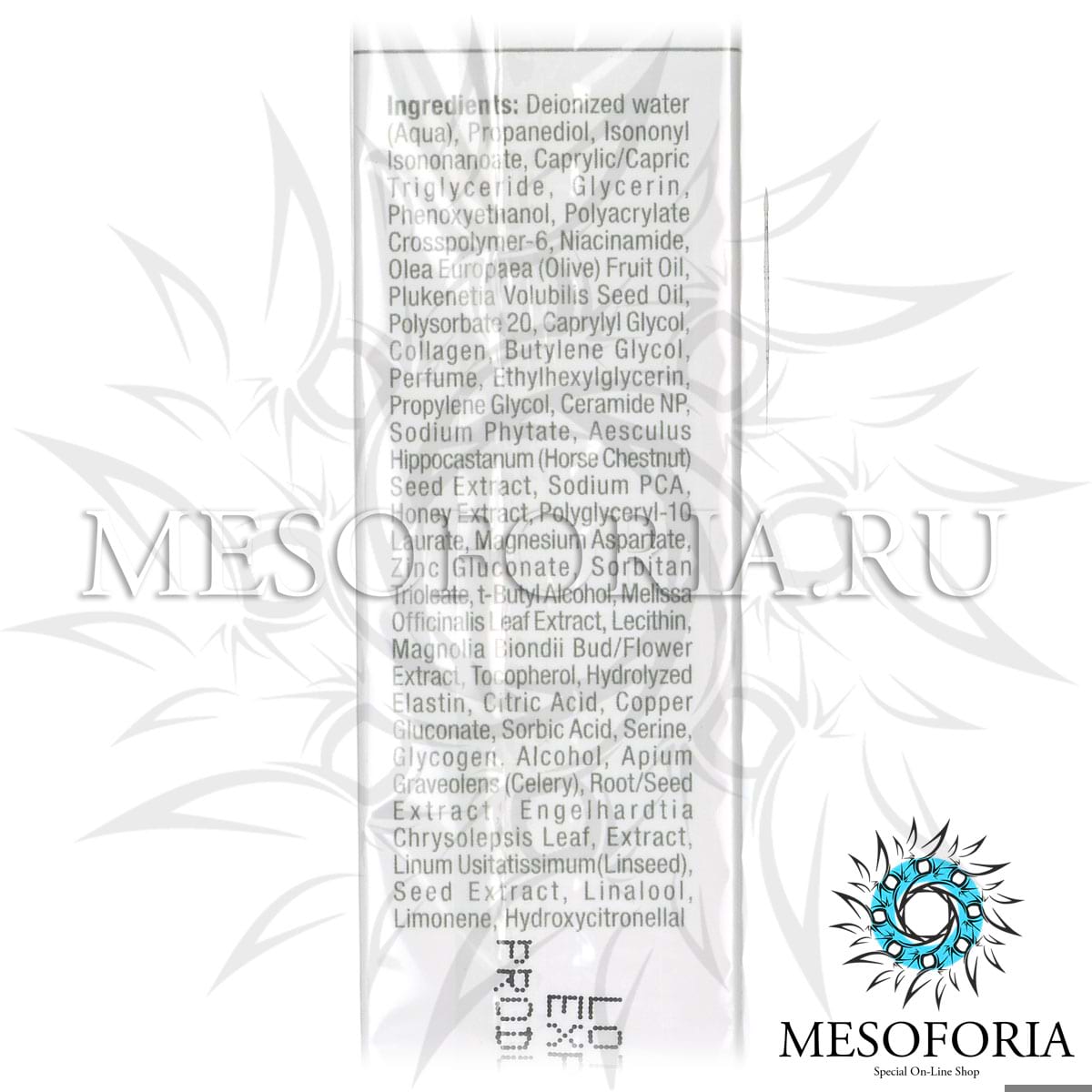 Комплекс Mineral cellular stimulator, экстракт листьев энгельхардии, комплекс Marine restore complex, экстракт конского каштана, масло оливы, экстракт мелиссы, экстракт магнолии, токоферола ацетат, серин.