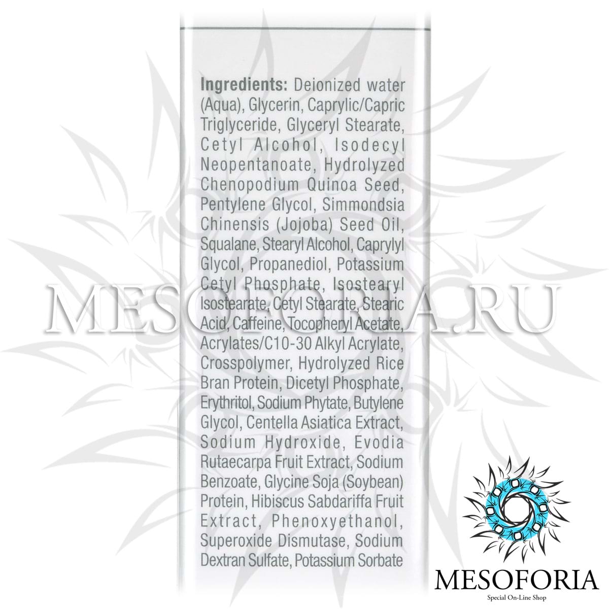 Активные ингредиенты: комплекс Eye beautifier (пептиды сои, супероксиддисмутаза), комплекс Skin tightener, комплекс Botanical hydrator, экстракт центеллы азиатской, кофеин, витамин Е, гидролизованный рисовый протеин, экстракт эводии рутоплодной, экстракт гибискуса.