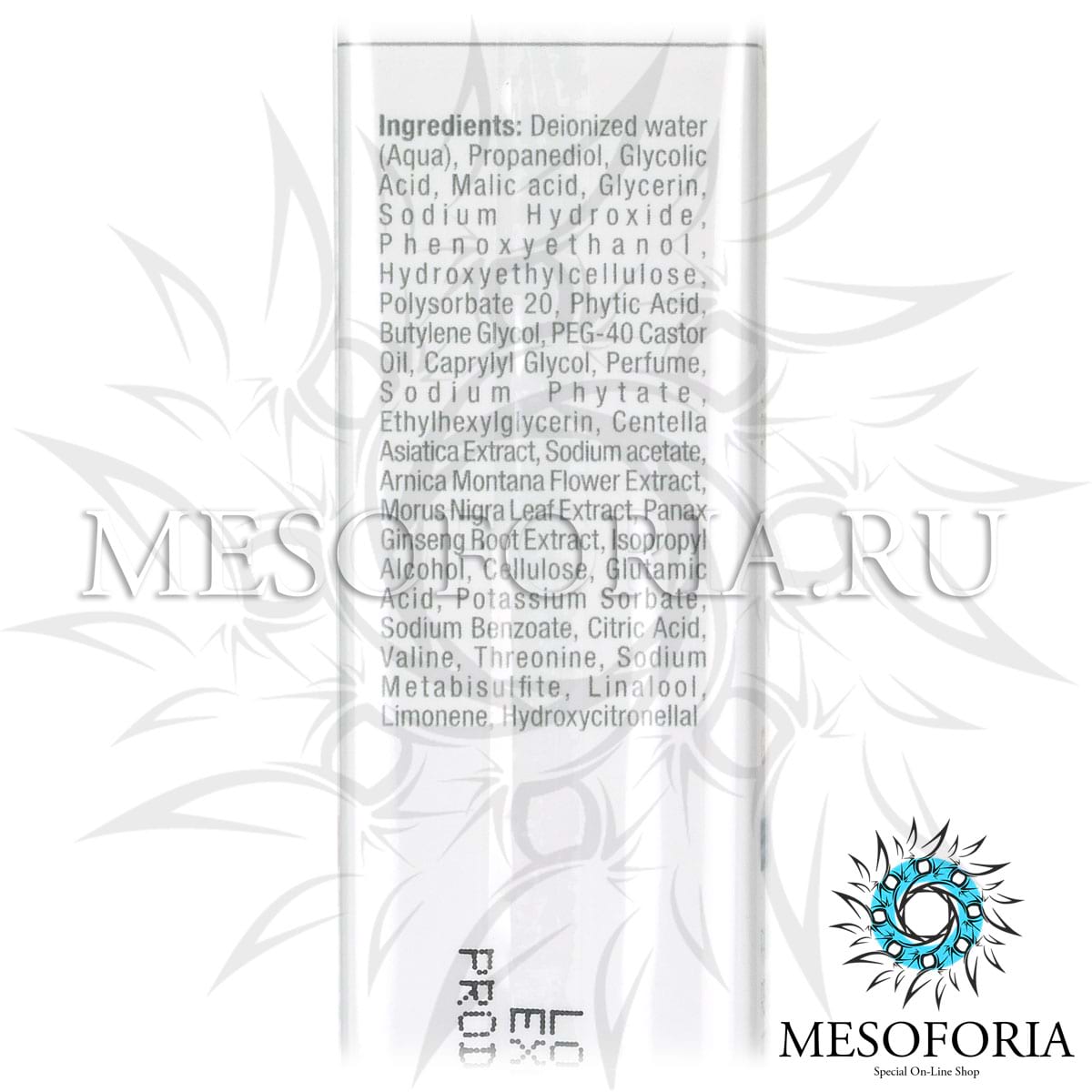 AHA 6%, гликолевая кислота, яблочная кислота, экстракт женьшеня, фитиновая кислота, экстракт арники, комплекс Energy booster, экстракт центеллы азиатской, экстракт шелковицы, аминокислоты (валин, треонин, глутамин).