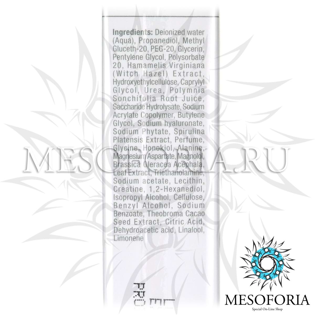 Активные ингредиенты: экстракт семян какао Theobroma, комплекс Unimoist U125 (аминокислоты, гидролизат сахарида, аспартат магния, глицин, аланин, креатин и мочевина), экстракт кейла, экстракт гамамелиса, комплекс Microbiota regulator, сок корня якона, экстракт спирулины.