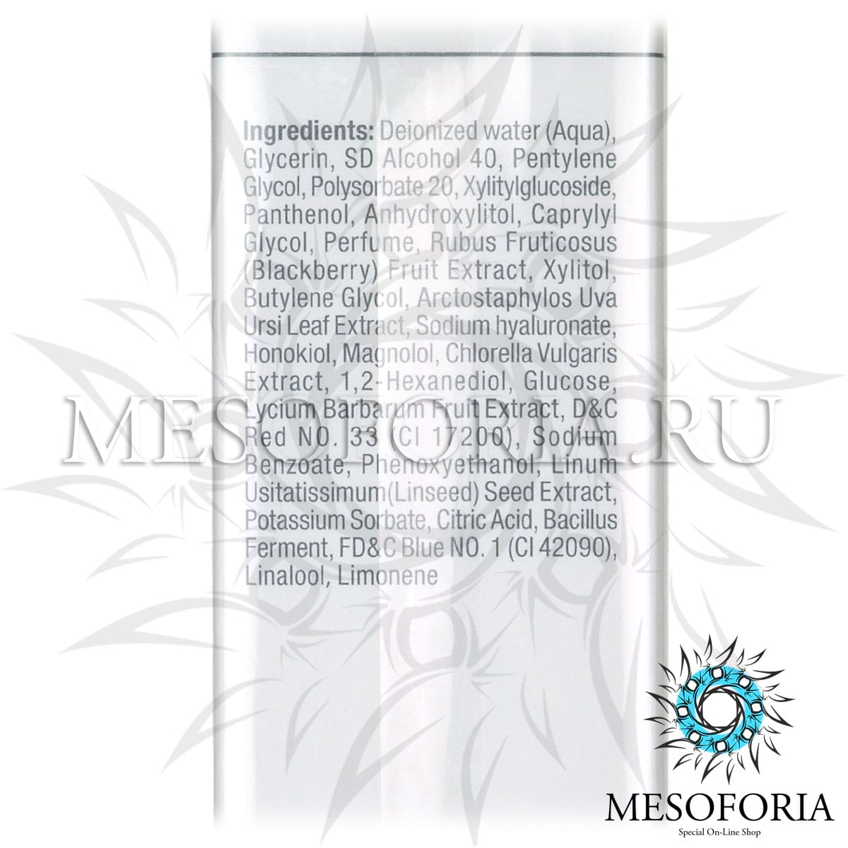 Активные ингредиенты: экстракт семян льна, комплекс Marine barrier, комплекс Hydrator shield, ягоды годжи, экстракт плодов ежевики, экстракт листьев толокнянки, экстракт Chlorella vuigaris, экстракт семян льна.