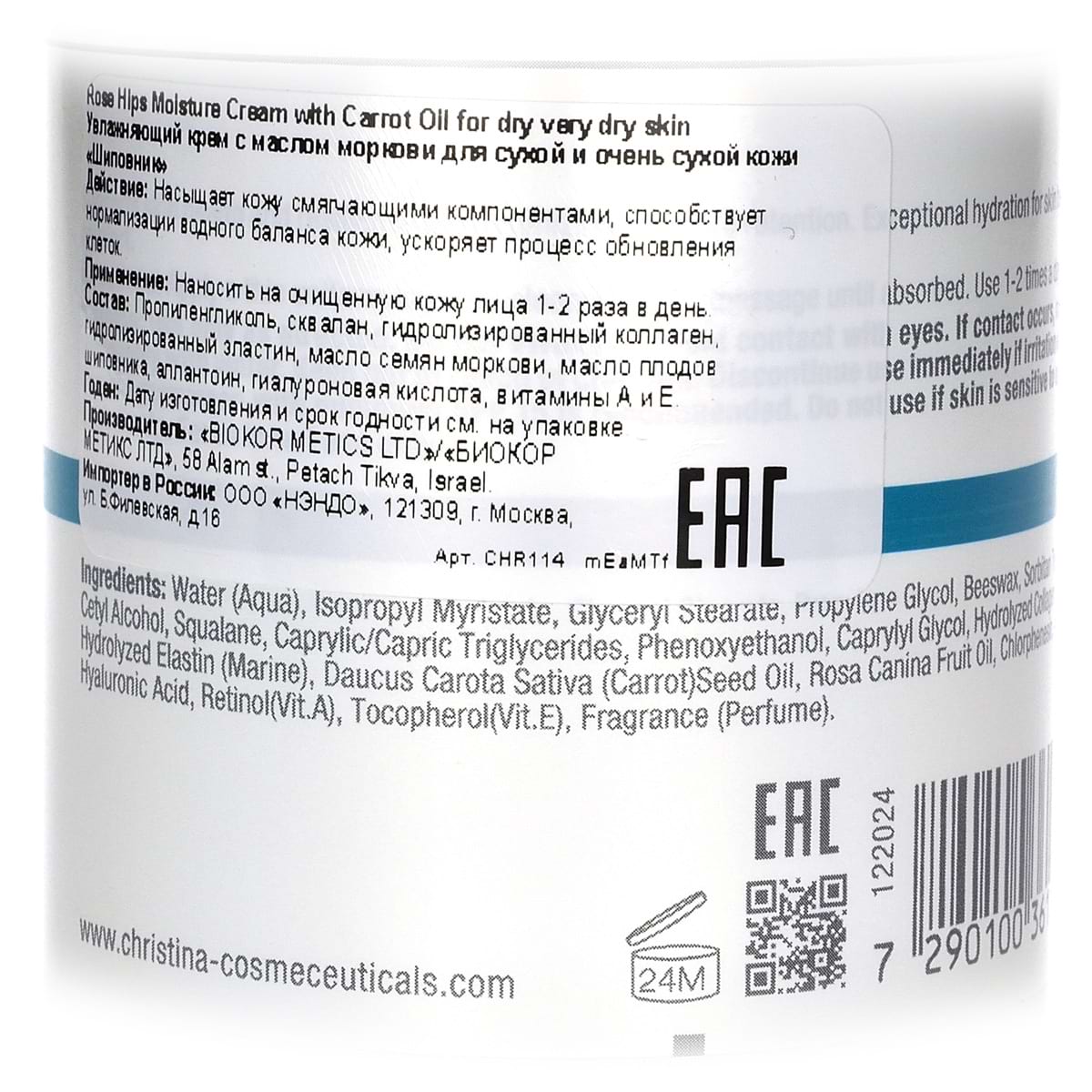 Увлажняющий крем с маслом моркови для сухой и очень сухой кожи «Шиповник» / Rose Hips Moisture Cream With Carrot Oil For Dry And Very Dry Skin, Christina (Кристина) - 250 мл