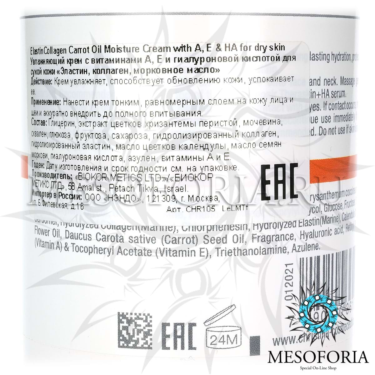 Увлажняющий крем с витаминами А, Е и гиалуроновой кислотой для сухой кожи «Эластин, коллаген, морковное масло» / Elastin Collagen Carrot Oil Moisture Cream with Vitamin A, E & HA for dry skin, Christina (Кристина) - 250 мл