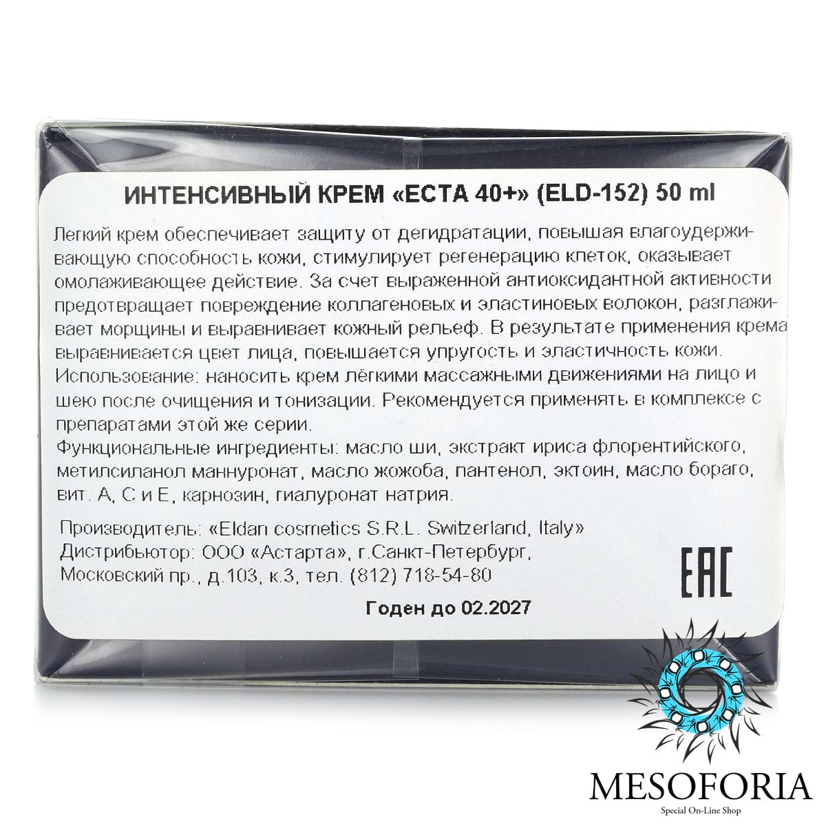 Интенсивный крем ECTA 40+ / ECTA Solution Total Retexturizing Cream, Premium, Eldan Cosmetics (Элдан косметика), 50 мл