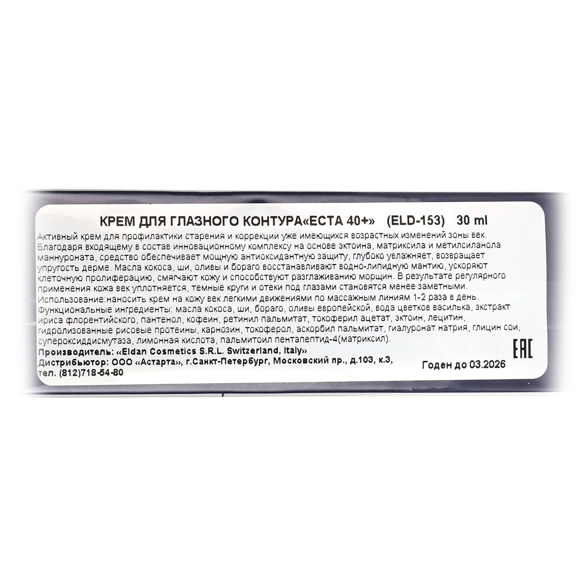 Крем для глазного контура ECTA 40+ / ECTA Treatment Eye Contour Cream, Premium, Eldan Cosmetics (Элдан косметика), 30 мл