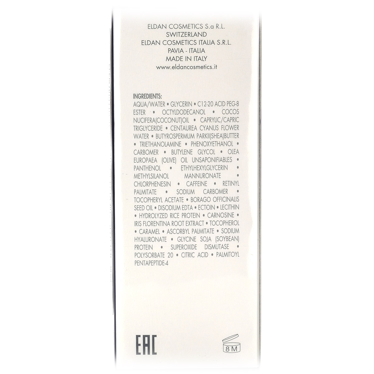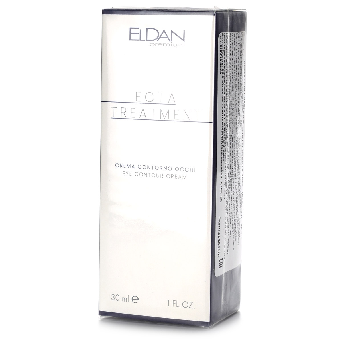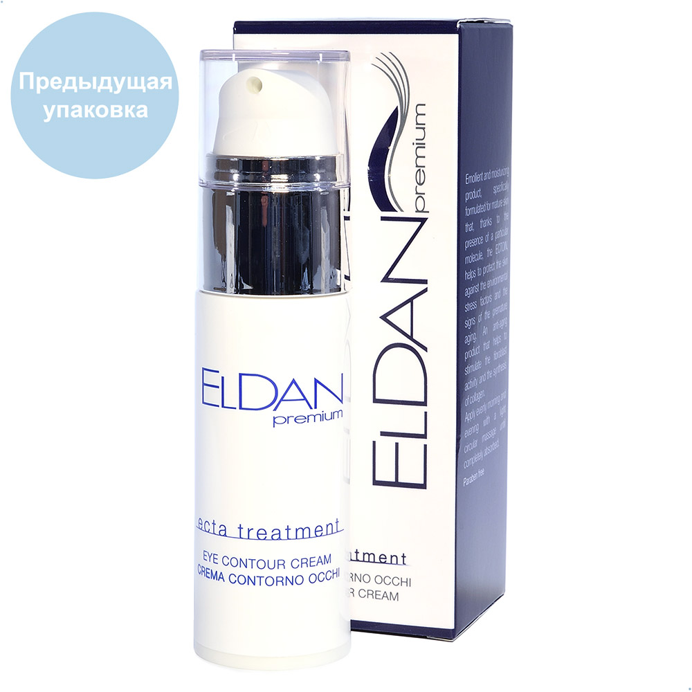 Активный крем ECTA Treatment Eye Contour Cream Premium Eldan для профилактики старения и коррекции уже имеющихся возрастных изменений зоны век. Благодаря входящему в состав инновационному комплексу на основе эктоина, низкомолекулярного аналога гиалуроновой кислоты (Bioami skin), матриксила и метилсиланола маннуроната, средство обеспечивает мощную антиоксидантную защиту, глубоко увлажняет, возвращает упругость дерме. Масла кокоса, ши, оливы и бораго восстанавливают водно-липидную мантию, ускоряют клеточную пролиферацию, смягчают кожу и способствуют разглаживанию морщин. В результате регулярного применения кожа век уплотняется, темные круги и отеки под глазами становятся менее заметными.