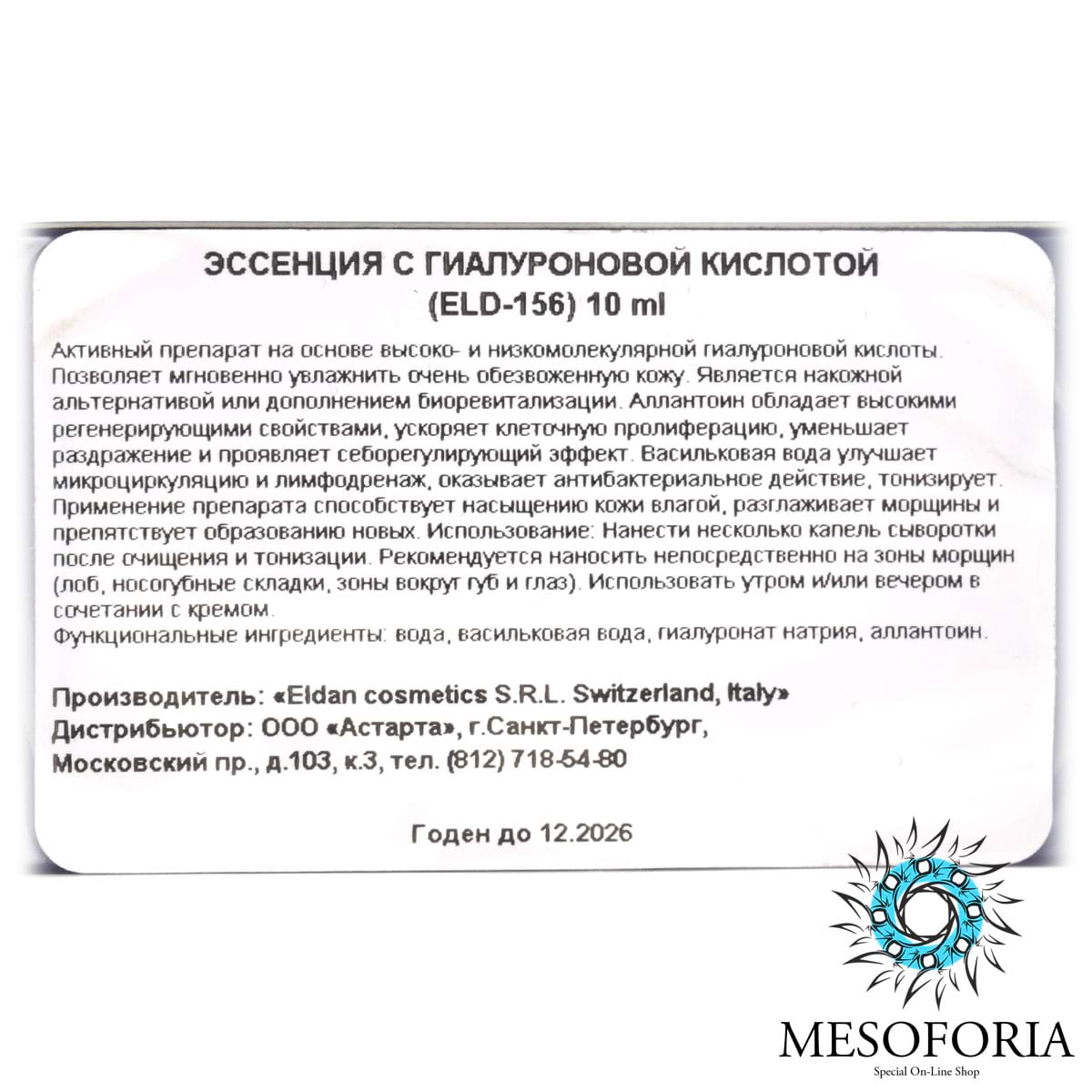 Эссенция с гиалуроновой кислотой / Ialuron Pure Essence, Ialuron Treatment, Premium, Eldan Cosmetics (Элдан косметика), 10 мл